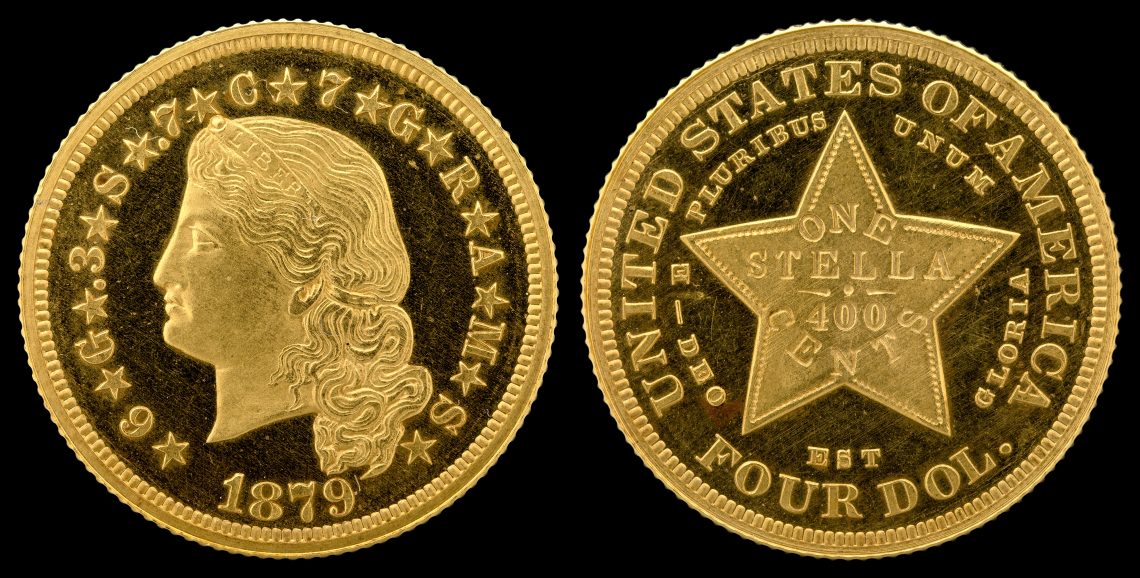 오늘날 $4 스텔라는 누미스마틱스 시장의 스타입니다. 1879년 플로잉 헤어는 상태에 따라 10만~200만 달러, 1880년 코일드 헤어는 최고 257만 4천 달러에 경매되었습니다. 가장 유명한 세트는 2024년 ANA 월드 페어 오브 머니에서 전시되었으며, PCGS 등급 PR67CAM 등 최고 등급입니다.